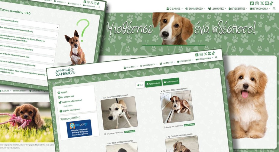*Καλό νέο. Ο Δήμος Ξάνθης, στο πλαίσιο των πρωτοβουλιών για την υπεύθυνη διαχείριση των αδέσποτων ζώων και ενθαρρύνοντας τη συμμετοχή των δημοτών σε δράσεις που προάγουν την ευζωία τους, παρουσιάζει την ανανεωμένη ιστοσελίδα του, με στόχο την ενίσχυση της ενεργής συνεισφοράς των δημοτών στη φροντίδα των τετράποδων φίλων μας.