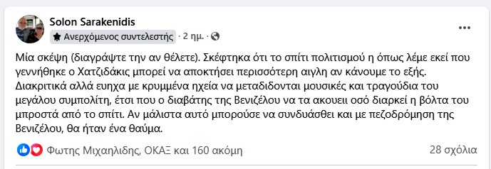 *Σχολιάζει ο γνωστός συμπολίτης μας και μέλος της ΦΕΞ Σόλων Σαρακενίδης στο fb: