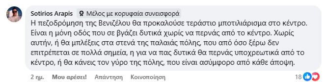 *Άλλωστε δεν είμαι ο μόνος που διαφωνώ με την πεζοδρόμηση της Βενιζέλου που είναι εκτός από πρόχειρη και παντελώς «αστεία» για όσους μετακινούνται στην πόλη.