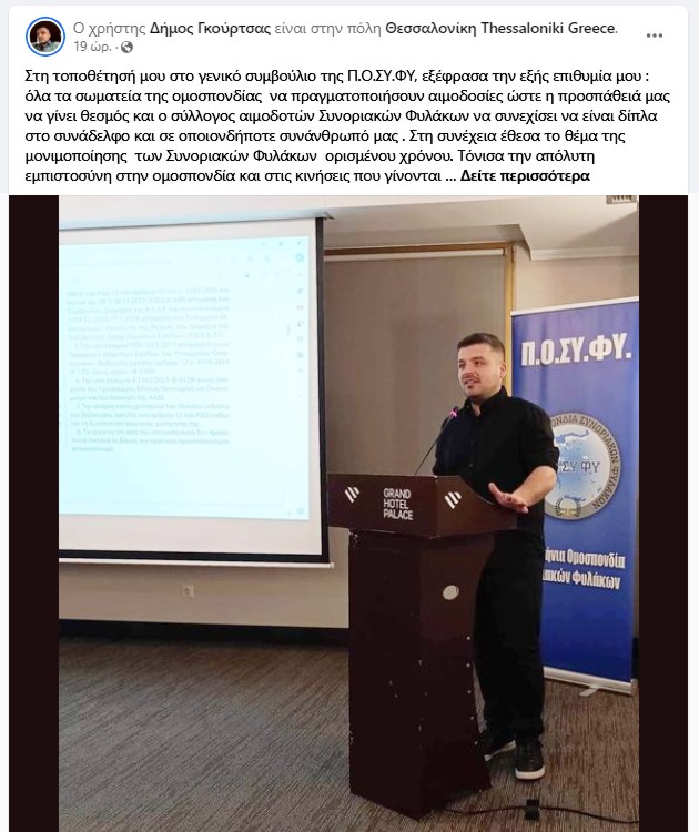 *Στην Θεεσαλονίκη βρέθηκε ο τοπικός σύμβουλος του Δήμου Ξάνθης και μέλος του γενικού συμβουλίου της Π.Ο.ΣΥ.ΦΥ, και ιδού και η σχετική ανάρτησή του για την τοποθέτησή του όπως την παρουσιάζει ο ίδιος:
