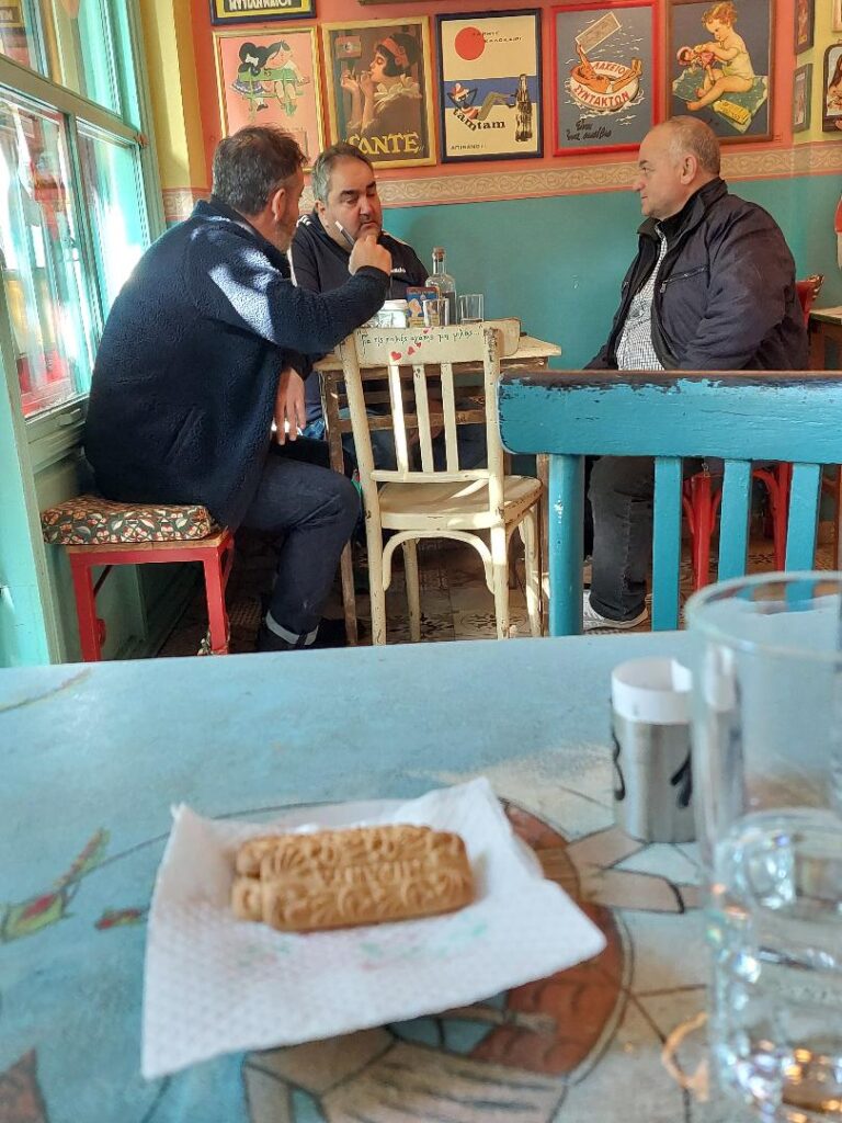 ΦΩΤΟ τρία από τα καλύτερα παιδιά ο ιδιοκτήτης του παραδοσιακού καφενείον ΤΑΜ-ΤΑΜ Νεκτάριος Χρυσοστομίδης, ο πρώην γενικός αρχηγός της Ασπίδας Ξάνθης Θέμης Ζουμπουλίδης και ο αστυνομικός Γιώργος Σιδηρόπουλος. Η κουβέντα περιστράφηκε για το Live της Παρασκευής όπου ο Θέμης και ο Γιώργος έχουν κλείσει τραπέζι.