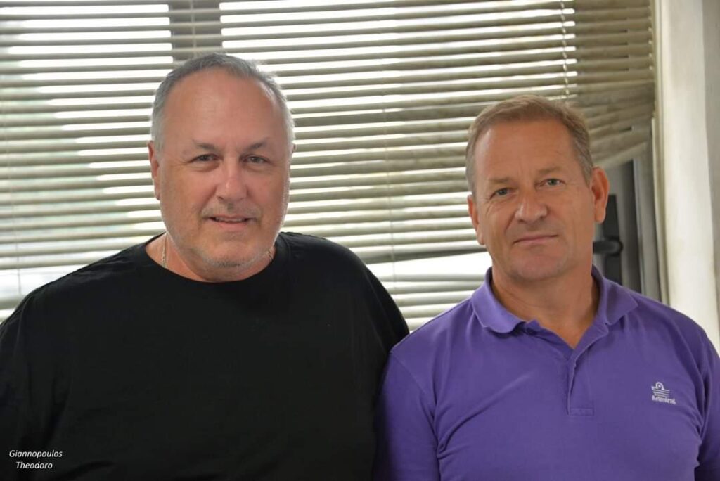 ΦΩΤΟ δύο σημαντικοί άνθρωποι και φίλοι που είχαν και σχέση με τον αθλητισμό ο Θόδωρος Γιαννόπουλος πρώην αθλητής του υγρού στίβου με πολλές διακρίσεις και πολλά μετάλλια και ο Παναγιώτης Δέλλιος πρώην διαιτητής με μεγάλη προσφορά στην ελληνική διαιτησία . Σίγουρα αν θα συναντηθούν θα έχουν να πουν πολλά από της καλές τους αναμνήσεις.