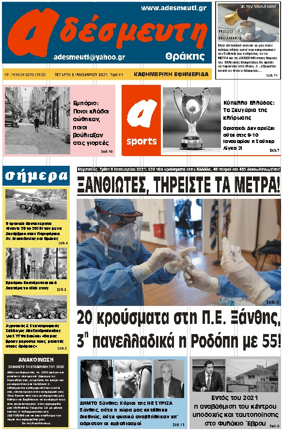 ΤΕΤΑΡΤΗ 6 ΙΑΝΟΥΑΡΙΟΥ 2021