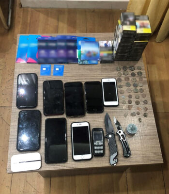 -Κατασχέθηκαν, επίσης μεταξύ άλλων, 2 μαχαίρια , 18 πακέτα τσιγάρα και 27 νομίσματα