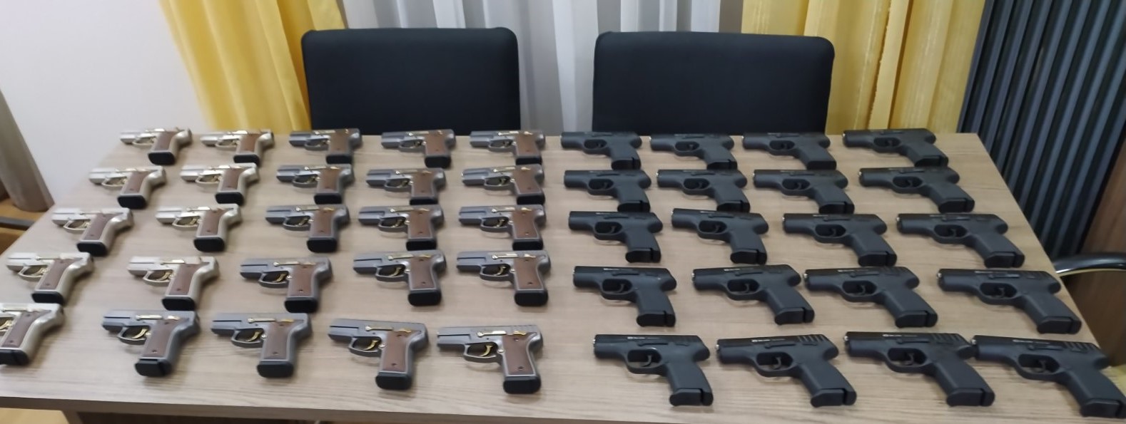 Στην κατοχή τους βρέθηκαν μεταξύ άλλων 45 πιστόλια -20 μάρκας Blow και 25 μάρκας Walter, διαμετρήματος 7,65- και δυο στιλέτα.
