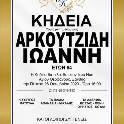 Η κηδεία του θα γίνει την Πέμπτη 26/10 στις 16.00