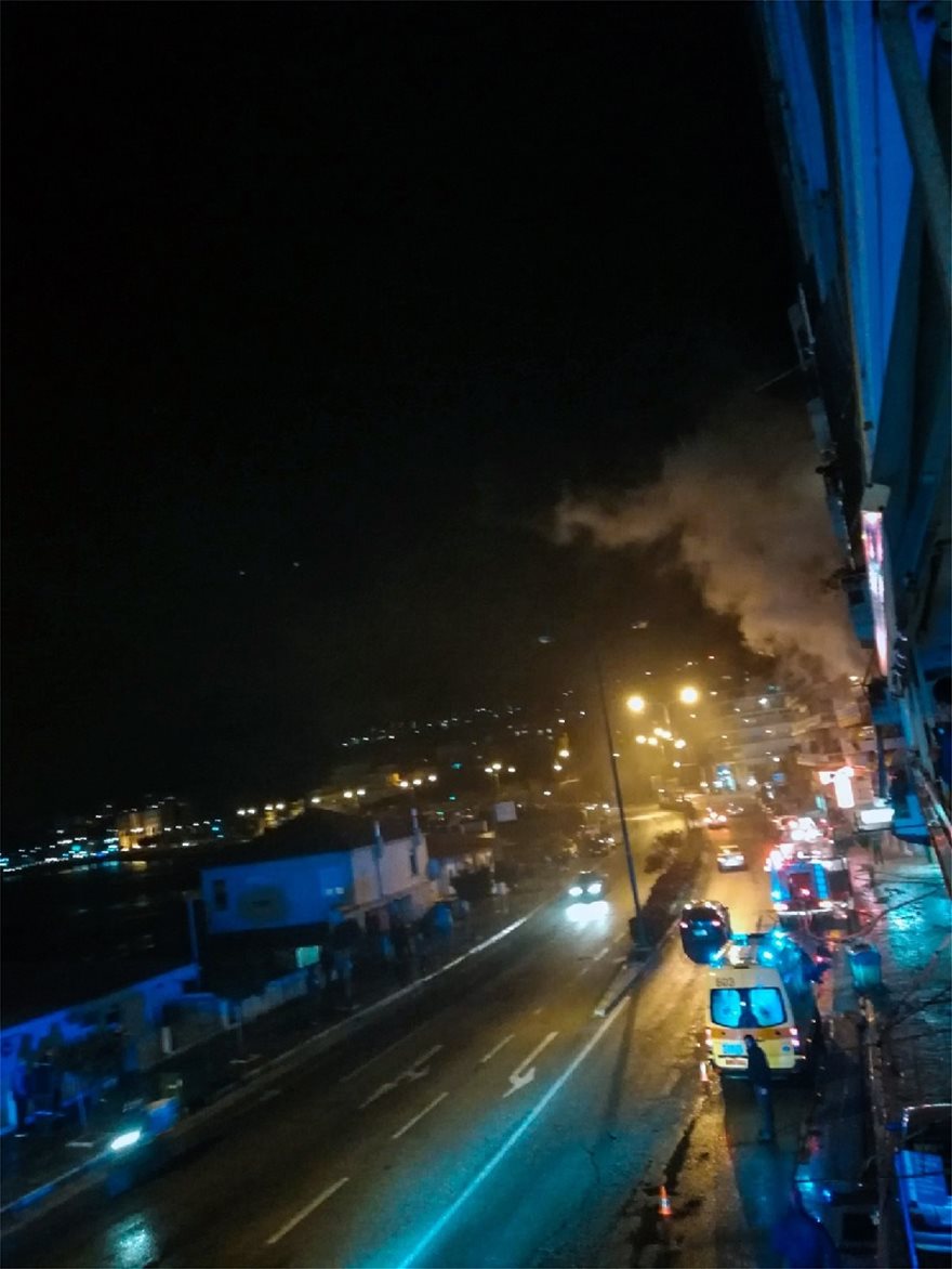 Η φωτιά εκδηλώθηκε λίγο μετά τις 20:00 και αμέσως στο σημείο έσπευσαν η Πυροσβεστική και το ΕΚΑΒ.