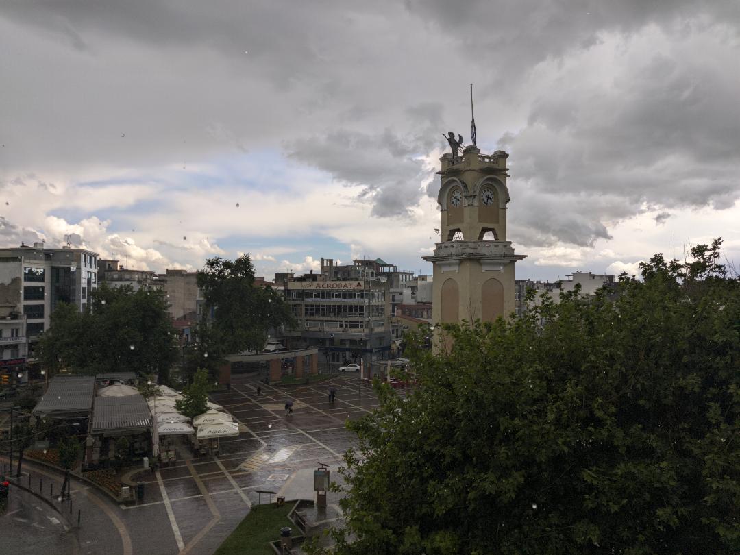 Μάλιστα το χαλάζι ήταν τόσο μεγάλο χτυπώντας με δύναμη τις σκεπές των αυτοκινήτων σε σημείο πολλοί να παρκάρουν στο δρόμο και να αναζητούν μια σίγουρη στέγη και η πλατεία να μετατρέπεται σε …. λίμνη!