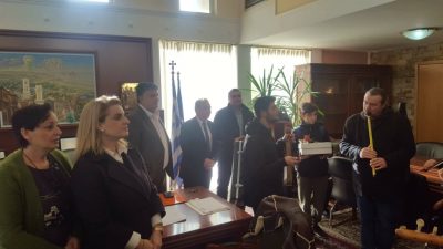 «Χριστουγεννιάτικα κάλαντα έψαλαν στην πολιτική ηγεσία της Περιφερειακής Ενότητας Ξάνθης, η χορωδια του μουσικού σχολείου, παρουσία του Δημάρχου Ξάνθης Χαράλαμπου Δημαρχόπουλου, της Αντιπεριφερειάρχου Υγείας και Κοινωνικής Μέριμνας Κυριακής Αλατζά και της Περιφερειακής Συμβούλου Γεωργίας Χειράκη.