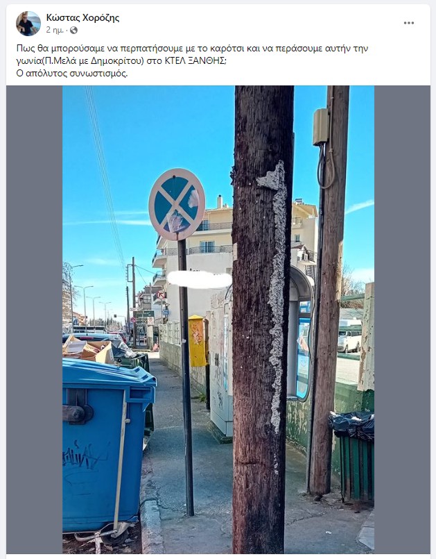 Πως θα μπορούσαμε να περπατήσουμε με το καρότσι και να περάσουμε αυτήν την γωνία (Π.Μελά με Δημοκρίτου) στο ΚΤΕΛ ΞΑΝΘΗΣ;