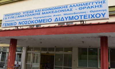 *Συναγερμός σήμανε στο νοσοκομείο Διδυμοτείχου καθώς διαγνώσθηκαν θετικοί στον κορονοϊό περισσότερα από 40 μέλη του προσωπικού (γιατροί, νοσηλευτές, τεχνικοί), με αποτέλεσμα να δημιουργούνται σοβαρά προβλήματα στην εύρυθμη λειτουργία του Νοσηλευτικού Ιδρύματος.
