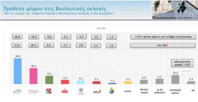 *Δύο νέες δημοσκοπήσεις της Pulse και της Metron επιβεβαιώνουν το άνετο προβάδισμα της ΝΔ, με πάνω από 11 μονάδες, έναντι του ΣΥΡΙΖΑ.