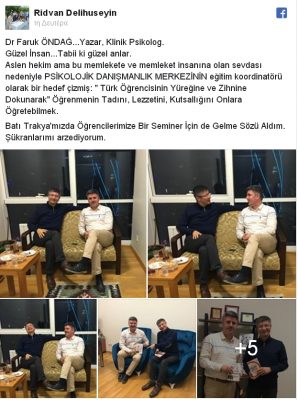 *Μάλιστα και ο ίδιος Δήμαρχος Μύκης έσπευσε να γνωστοποιήσει την παρουσία του στην γείτονα χώρα αλλά και τις εκεί ιδιαίτερες επαφές του και στα μέσα κοινωνικής δικτύωσης με ανάρτησή του στο fb φυσικά στην…Τουρκική γλώσσα! Αφού καυχιέται όπου βρεθεί κι όπου σταθεί ότι είναι…Τούρκος Δήμαρχος.