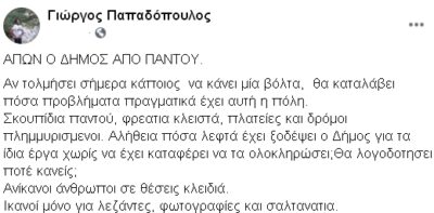 *Χαρακτηριστικό το σχόλιο από δημότη της πόλης (Στραβά κι Ανάποδα) για την κατάσταση που επικρατεί σήμερα.