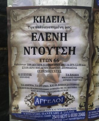 *Την πολυαγαπημένη του σύζυγο Ελένη έχασε ο Αχιλλέας Ντούτσης που έχει τον ΠΗΓΑΣΟ στην οδό Ηρώων.