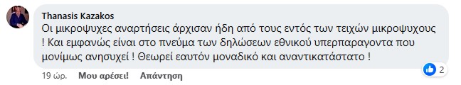 Οι μικροψυχες αναρτήσεις άρχισαν ήδη από τους εντός των τειχών μικροψυχους! Και εμφανώς είναι στο πνεύμα των δηλώσεων εθνικού υπερπαραγοντα που μονίμως ανησυχεί ! Θεωρεί εαυτόν μοναδικό και αναντικατάστατο!».