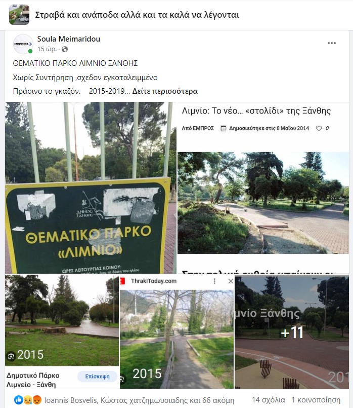 *Η Πρόεδρος του Τοπικού Συμβουλίου Ξάνθης Σούλα Μεϊμαρίδου για μια ακόμη φορά. «ξεφτίλισε» την αδιαφορία του Δήμαρχου Τσέπελη και της «παρέας» της και για το γνωστό Λημνίο το οποίο έχει το μαύρο του το χάλι, όπως και όλη η πόλη.