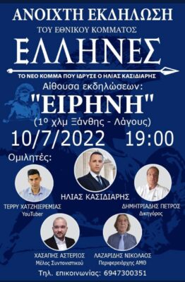 *Ανοιχτή Εκδήλωση του Εθνικού Κόμματος ΕΛΛΗΝΕΣ στην Ξάνθη και μάλιστα με ομιλητή τον….Κασιδιάρη!!!