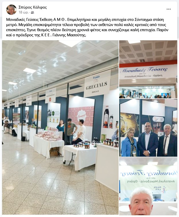 Μοναδικές Γεύσεις Έκθεση ΑΜΘ. Επιμελητήρια και μεγάλη επιτυχία στο Σύνταγμα στάση μετρό. Μεγάλη επισκεψιμότητα τέλεια προβολή των εκθετών πολύ καλές κριτικές από τους επισκέπτες. Έγινε θεσμός πλέον δεύτερη χρονιά φέτος και συνεχίζουμε καλή επιτυχία. Παρών και ο πρόεδρος της ΚΕΕ Γιάννης Μασούτης.