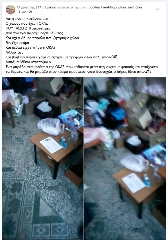 Ένα μπράβο στα κορίτσια της ΟΚΑΞ που κάθονται μέσα στη νύχτα με φακους και φτιάχνουν τα δέματα και θα μπράβο στον κόσμο προσφέρει γιατί δυστυχώς ο Δήμος Είναι απών».
