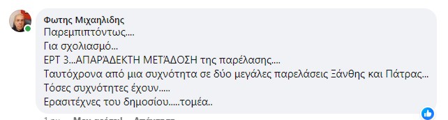 *Και την ίδια ώρα ο γνωστός συμπολίτης μας και ΑΟΞάρας Φώτης Μιχαηλίδης, σχολίαζε από κάτω τα παρακάτω:
