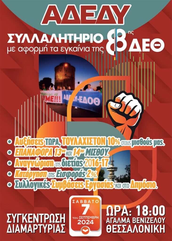 ΣΥΛΛΑΛΗΤΗΡΙΟ ΑΔΕΔΥ ΞΑΝΘΗΣ ΜΕ ΑΦΟΡΜΗ ΤΑ ΕΓΚΑΙΝΙΑ ΤΗΣ 88ης ΔΕΘ ΣΤΙΣ 7 ΣΕΠΤΕΜΡΙΟΥ 2024