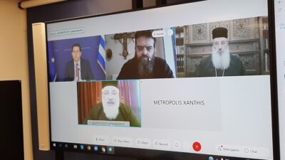 *Τηλεδιάσκεψη με τον Μητροπολίτη Ξάνθης καθώς και τους Μητροπολίτες Αλεξανδρούπολης, Κομοτηνής και Διδυμοτείχου, είχε την Τετάρτη ο Υπουργός Μετανάστευσης και Ασύλου, Νότης Μηταράκης.